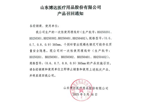 山東博達(dá)醫(yī)療用品股份有限公司是生產(chǎn)可吸收性外科縫線專(zhuān)業(yè)廠家,主要產(chǎn)品有可吸收縫合線 、內(nèi)窺鏡圈套線、穴位埋線、快吸收美容線、醫(yī)用羊腸線 膠原蛋白線以先進(jìn)的生物技術(shù)提取了健康哺乳動(dòng)物內(nèi)臟的膠原蛋白為基材,采用先進(jìn)的工藝加工而成,線體的主要成分為高純度膠原蛋白,并獲得了國(guó)家發(fā)明專(zhuān)利,頒布了YZB/國(guó)6301-2013《可吸收性外科縫線》產(chǎn)品標(biāo)準(zhǔn),并通過(guò)了ISO9001:2015和ISO13485:2016質(zhì)量管理體系認(rèn)證。
